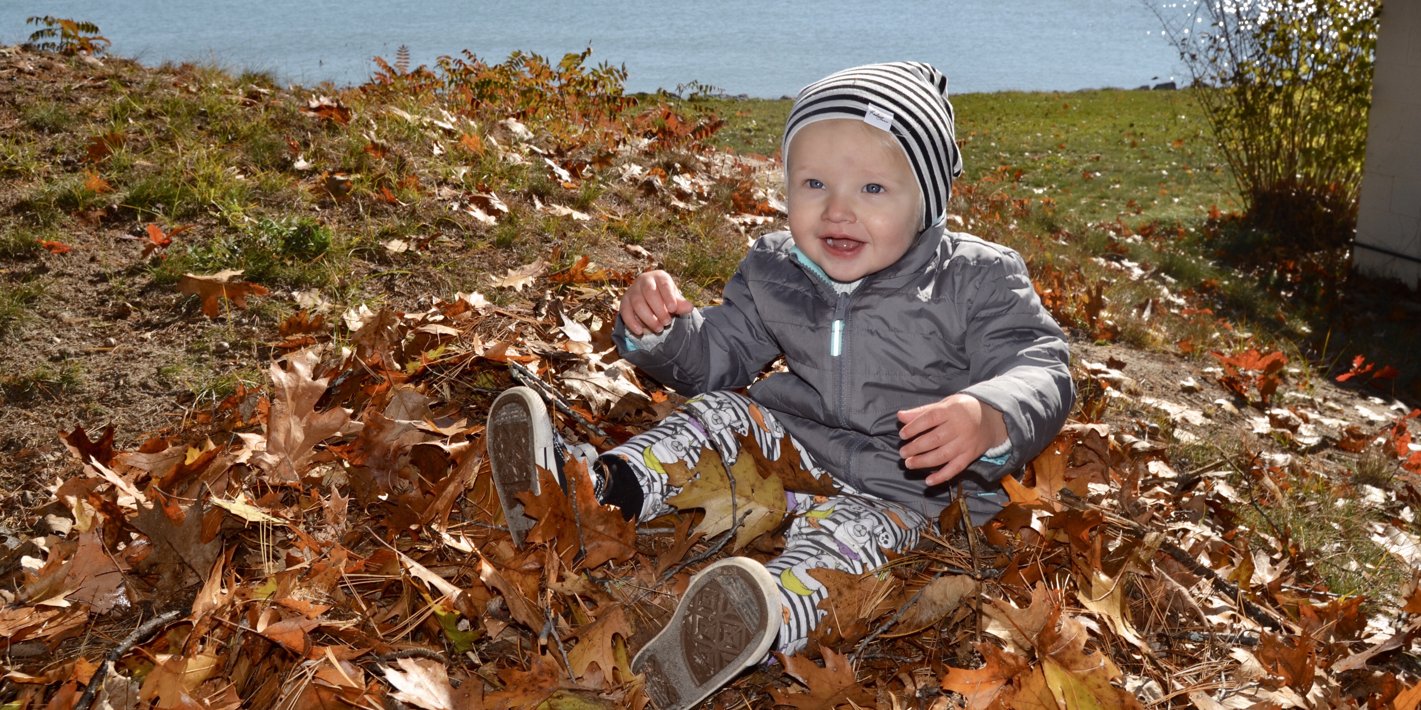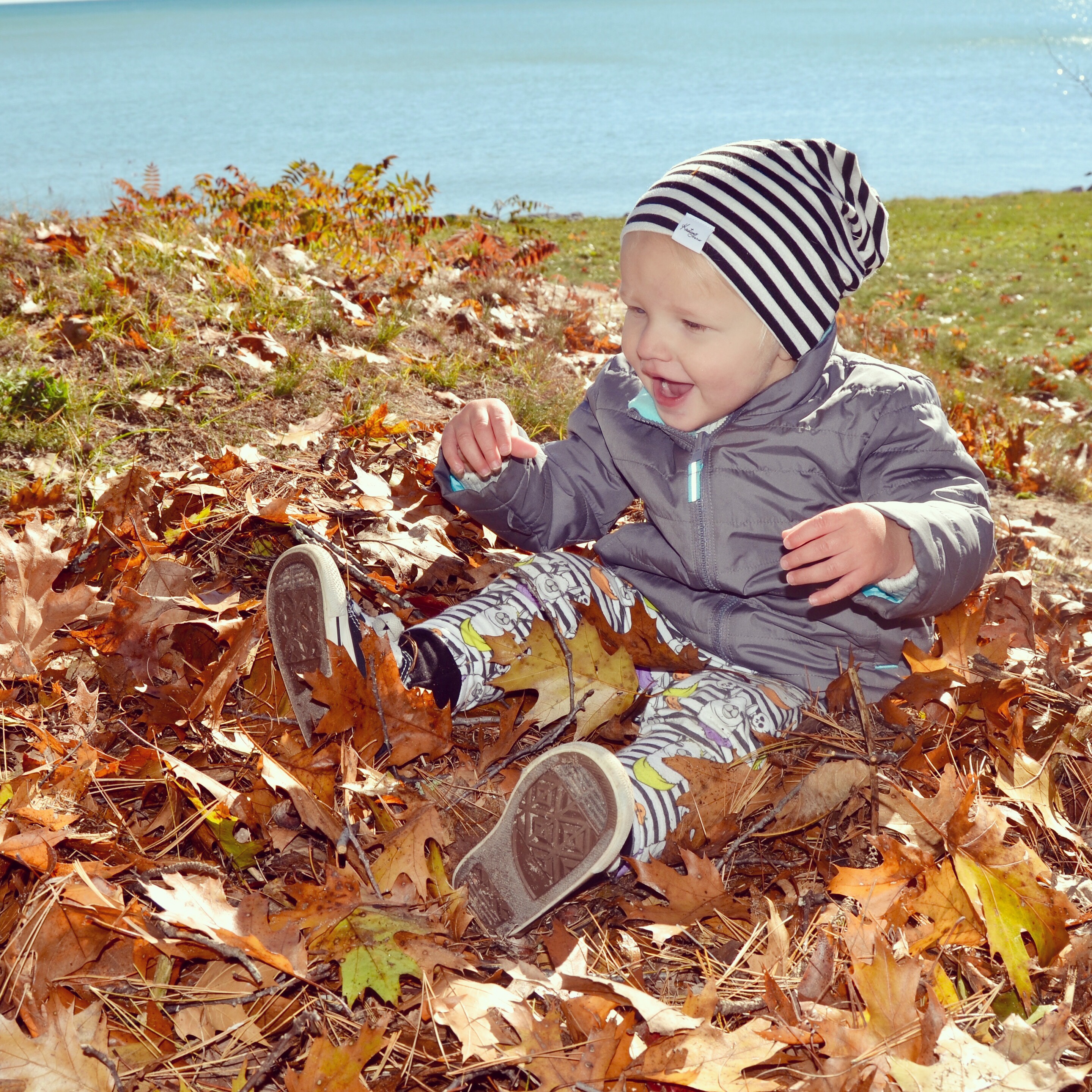 This time last fall Carter was only six months, and we were celebrating milestones of him starting to crawl, babble, and all of his first holidays. Now, Carter is 18 months and things have changed. I have to say I LOVE this age. We are still celebrating lots of “firsts” of course, that hasn’t changed. But our firsts are becoming more exciting and fun to celebrate. I always talk about how much Carter loves being outside. He loves his swing, he loves to try and run as fast as he can, he loves to throw rocks and more. He’s been wanting to sneak his way down to the beach lately too! Little does he know how cold the water is at this time of year now. I looked around our yard and noticed how many leaves had finally fallen off the trees, and decided today was going to be Carter’s first pile of leaves.