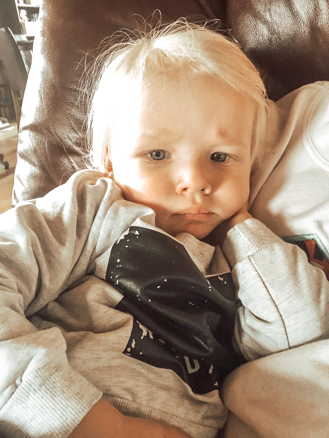 Everything seemed fine, until I didn’t hand him his binky like I normally do. He looked so confused and kind of rolled side to side looking around to see where it was. I reminded him that we have our special “blankie” now instead to help us nap and sleep at bedtime. It was a full blown meltdown from there. Carter was SO upset. I honestly thought everything was just fine, and little did I know how much not having his binky would make him feel! He stood up and was just screaming and crying SO hard. I picked him up and soothed him, rubbed his back and sang to him. He seemed to calm down but the second I would go to lay him back down, it was another epic meltdown. I FELT AWFUL. But I was trying not to give in because that wouldn’t help us at all. I decided to just hold him and rock him in his room, and eventually he fell asleep in my arms. I laid him in his crib, and he napped. He was only asleep for about an hour, but it was without his binky so I felt a little accomplished. But I was already dreading bedtime…