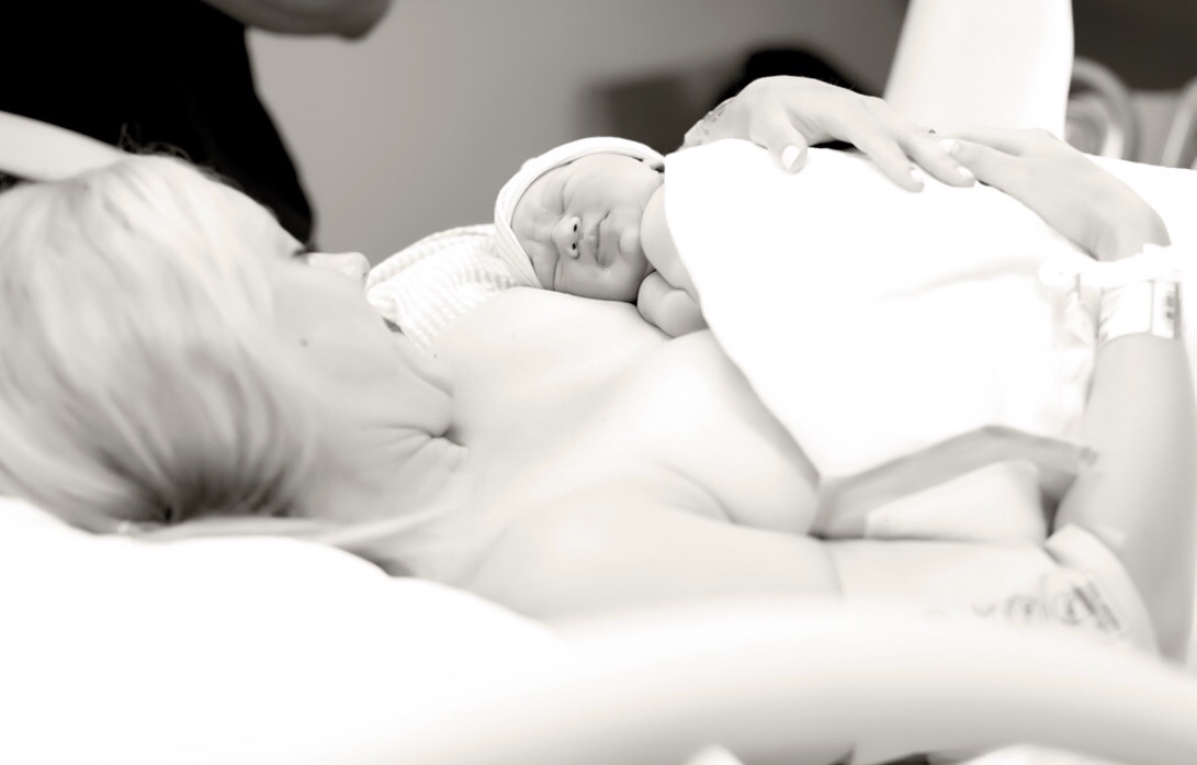 I will never forget that first cry. I actually was able to feel the entire delivery, but had no pain at all which was incredible. We were a family of four, I couldn’t believe it! Welcome to the world, Payton Jeanne! A few people asked where we got the name from, and honestly I’ve always loved the name Payton for a girl, and Jeanne is my middle name. The next few moments involved getting her all cleaned up so I could do skin-to-skin right away. When they placed her on my chest I literally felt like I was in heaven. The joy this moment brought me was indescribable. It took me back to when Carter was born and how amazing that was. I could feel God and our guardian angels watching down and beaming seeing us with our baby girl too. We waited so long for this moment. I couldn’t stop tearing up. Eight pounds and three ounces of love!