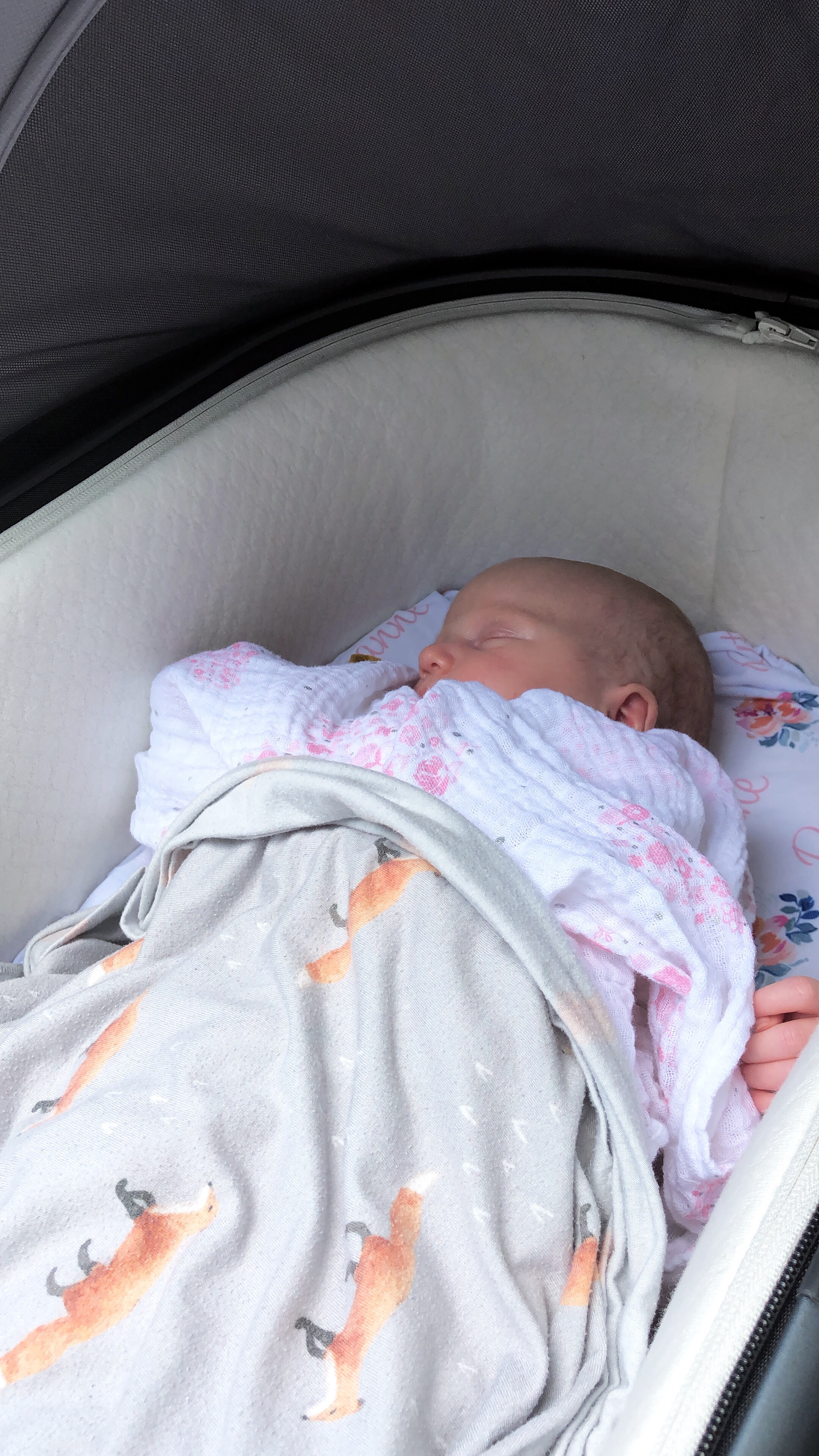 I have noticed that many stroller systems have an option to come with a bassinet to clip in, and I love that ours came with one! We have the Uppa Baby Vista Stroller and this system came with a bassinet making it even easier to take your baby on walks. I think with both Carter and Payton, I really looked forward to getting back on my feet again post birth, and getting to go on some walks. Instead of putting Payton in her car seat and attaching it onto the stroller, this bassinet option is a life saver. She can lay flat on her back and keep snoozing while I get some exercise in! Plus it can easily be attached to this stroller along with adding the toddler rumble seat in too. I know she’s comfortable and warm, and she can even stay sleeping in the bassinet inside our house too if she’s not quite ready to wake up yet. Highly recommend!