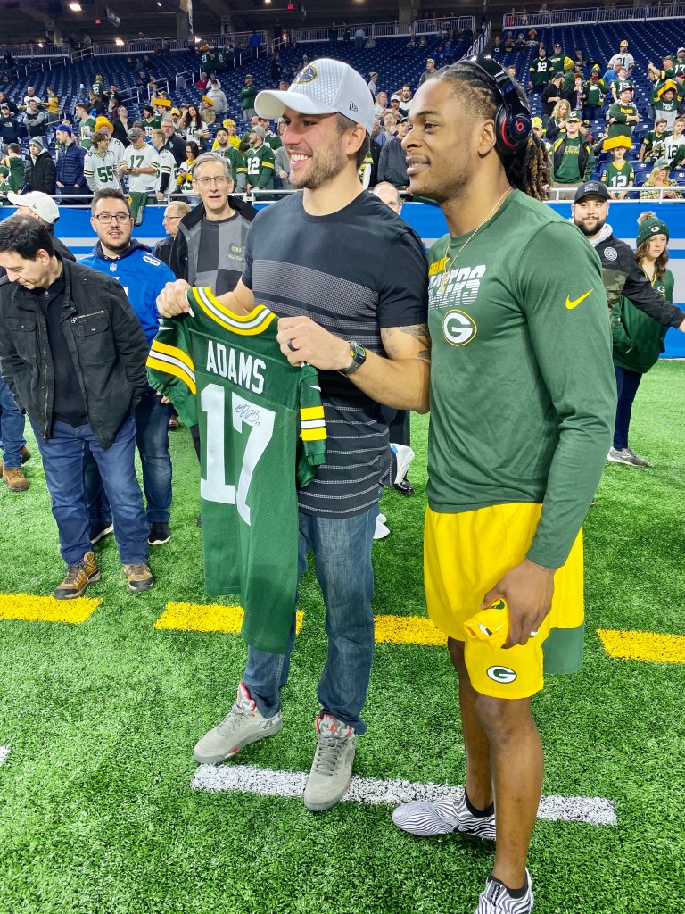 Jamaal and Aaron were nearby next so Jeff caught up with them too. There were even a few fans in the stadium yelling out Jeff’s name for an autograph. Jeff was in contact with Davante throughout the week so we knew we would see him.