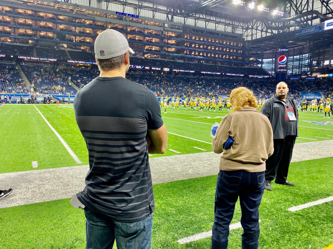 We were some of the first people to get on the field. You could smell football in the atmosphere! I think prior to the game Jeff was excited and looking forward to the day, but once we were in the stadium and got to be right down there for warmups, it ended up being an even better experience. We even ran into WFRV reporter, Lily Zhao who used to host Green Bay Nation when we were in Green Bay. It was really nice catching up with her! I had even mentioned to her my own emotions, of feeling like Jeff was playing that day? I had butterflies in my stomach just like old times before Green Bay games, it was so weird! I even felt a little anxious. But I cannot explain that even though we absolutely miss our football family from Wisconsin, we cannot praise God enough that Jeff made it in the NFL almost five years, and never had a serious injury.