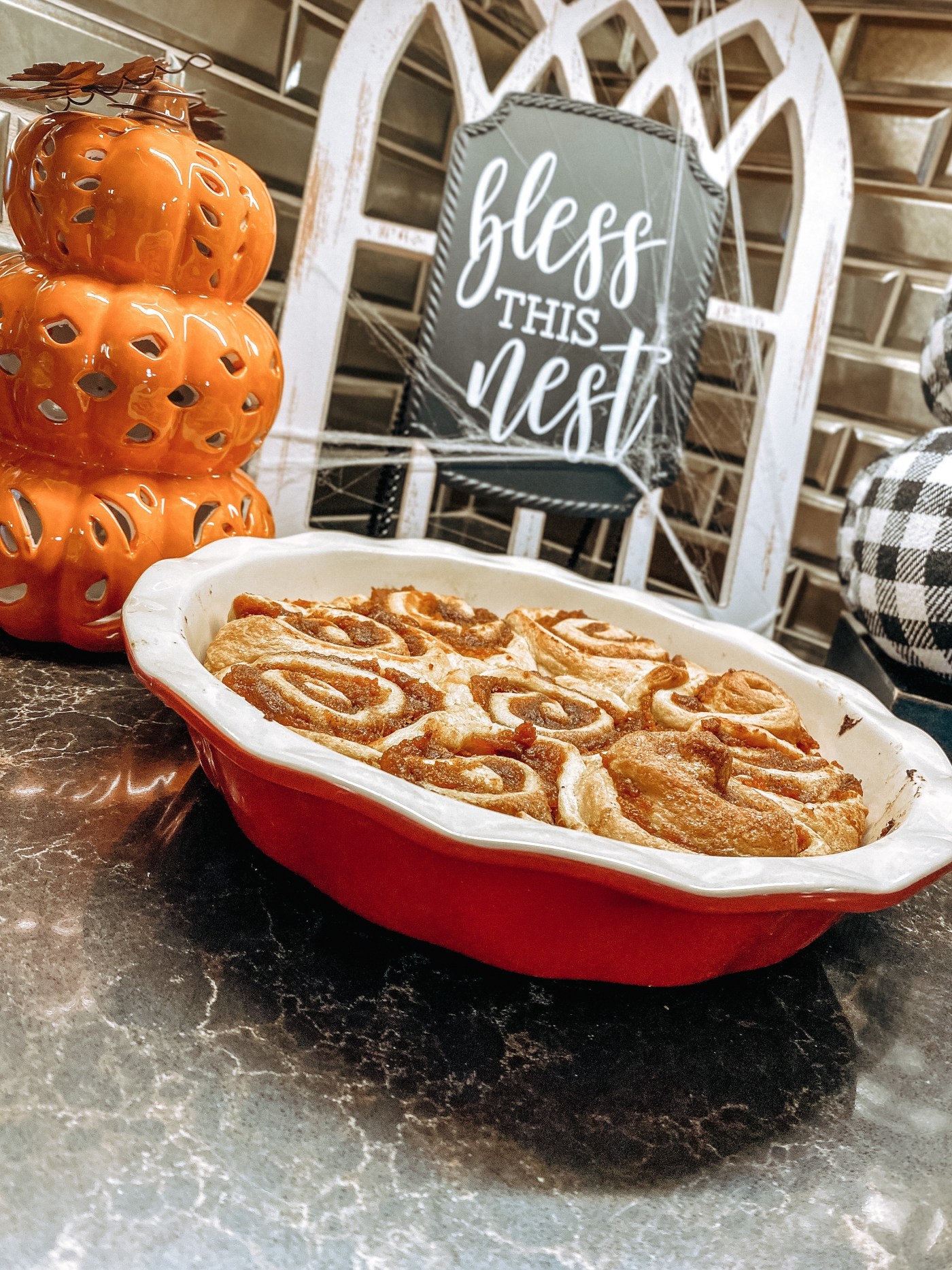 Looking for an easy fall dessert to whip up?! This is it! You could easily make these rolls this morning and have them ready for your afternoon fall gathering today! I love pumpkin spice flavors around this time. We love cinnamon rolls too, but I decided to make them pumpkin rolls instead! We hope you enjoy them as much as we did!