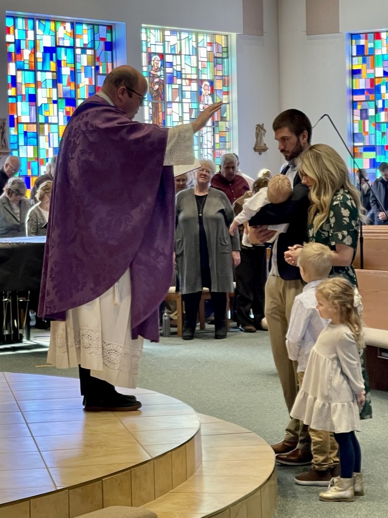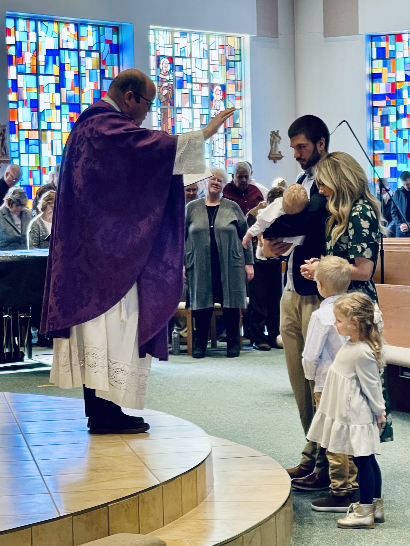 It was such a special day celebrating Levi’s Baptism! We could feel the love and strength of the Holy Spirit throughout the entire day. Levi is eight months old now, so he was our oldest baby baptized. He was so aware of everything! And between his faces and trying to grab Father Cooper’s hands lol, it was so special and we will always remember it.