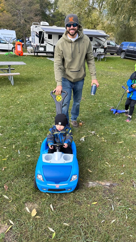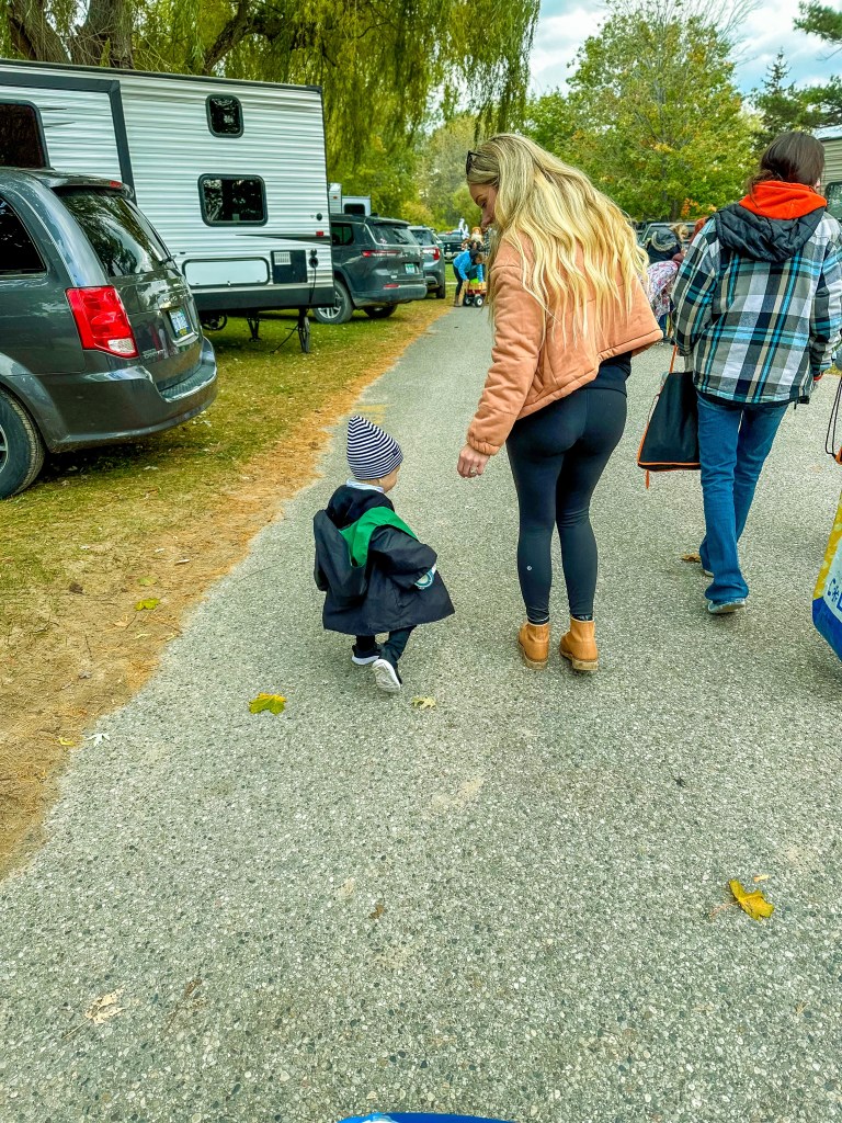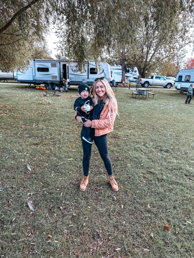 It’s Sunday again already?! We had such a great weekend out at our local campground, having some seasonal fun and celebrating Halloween. We have been going out there since Carter was a baby, so it has pretty much become a tradition. But this year we decided to take our own camper out there to try something a little different. Now this camper was mainly bought by Jeff for his hunting trips, but it also totally worked for a short weekend like this past one. It was pretty last minute, and I’ll be honest, I overpacked on some things.. under packed on other items lol.. but it was a great weekend with the kids. I think as a mom when you try to plan an event, or a fun weekend, you have this idea in your head of how it will go, and pretty much every time, it goes the complete opposite. Not in a bad way necessarily! The kids had such a blast this weekend. And I will admit, it was much needed, I love when we can get such good time in as a whole family.
